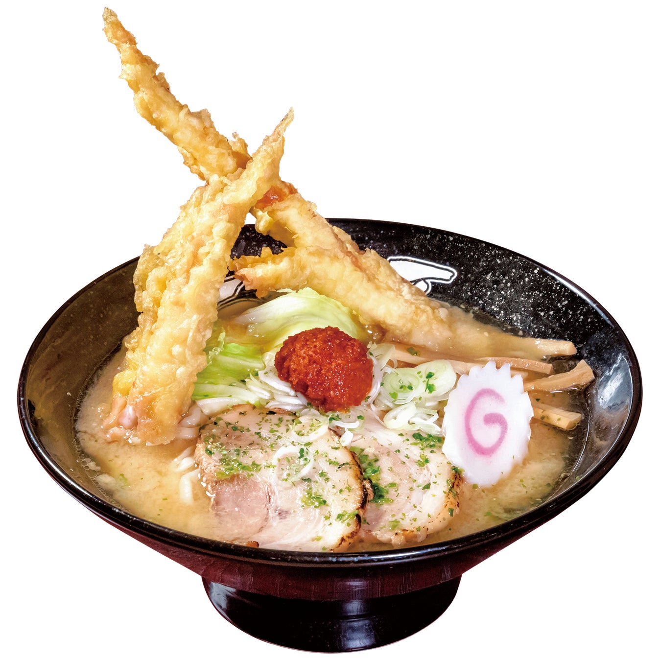 厳選された複数の素材から作られる飲み干したくなるようなこだわりのスープ、数種類の唐辛子と素材を使って熟成させた辛みそ、サクサクのげそ天を組み合わせた、その看板メニューは、一日に700杯を売り上げることもあるほどの人気を誇ります。