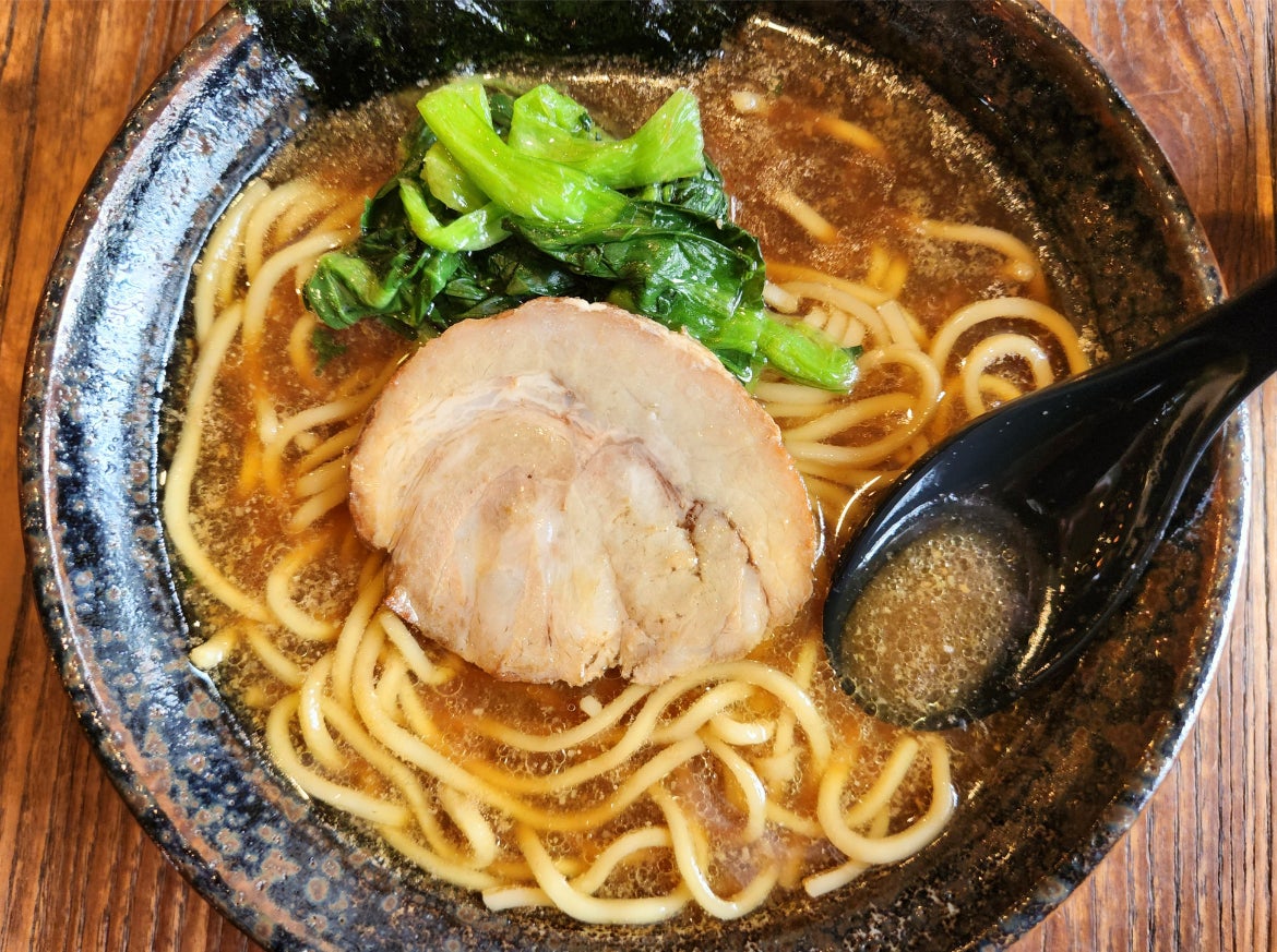 「水郷佐原 小江戸ラーメン」は、地元千葉県産の錦爽鶏とSPF豚をふんだんに使用したスープと、牛若丸店主のこだわり中太麺の味わい深い一杯です。スープは数時間かけてじっくり炊き上げ、一口食べれば、その深い旨味が口の中に広がります。